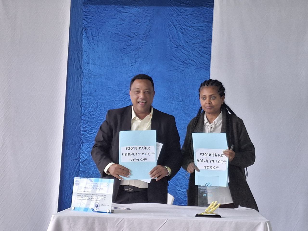 በመቀጠልም በተደረገው የካስኬዲንግ ፕሮግራም የኮሌጁ ዋና ዲን ታደሰ መኮንን (ዶ/ር) ለስልጠናና አካዳሚክ ጉዳዮች ም/ዲን ለወ/ሮ ትግስት አይናለም እንዲሁም ለኢንዱስትሪ ኤክስቴንሽንና ቴክኖሎጂ ሽግግር ም/ዲን እና ለተቋም ልማትና አስተዳደር ጉዳዮች ም/ዲን ሙሉጌታ አለሙ (ዶ/ር) የእቅድ ካስኬዲንግ የፊርማ ፕሮግራም ተከናውኗል፡፡